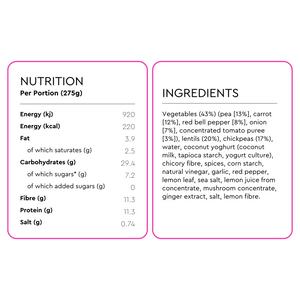 Plant based pantry staple, all natural ingredients, ready to eat in minutes. 275g serving - the perfect portion for one.