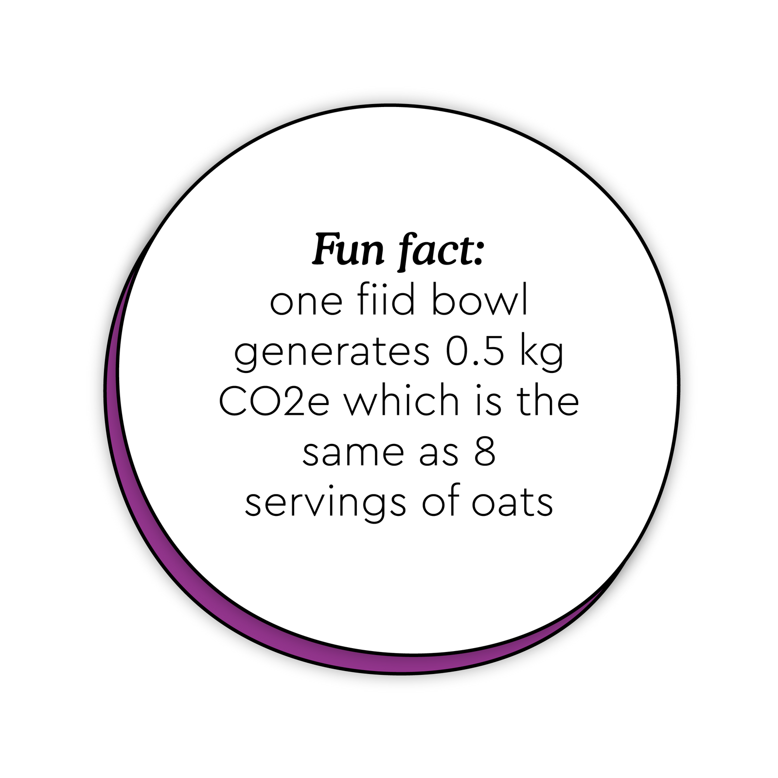 We worked with the team at Climate Partners to calculate the carbon emissions generated by our meals. We took the “cradle-to-customer plus waste” approach, calculating the life cycle of raw materials and packaging, relevant logistics, manufacturing, delivery to you, our customers, and the disposal of fiid and its packaging.